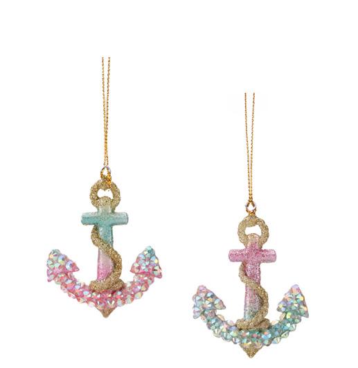 XMAS COUTURE JEWEL SHOE ORN ASS/2 RD/GRN 9CM