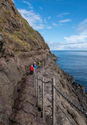 There are a number of clifftop trails that give you a stunning bird’seye view of the causeway and beyond to the ocean. Choose from the red, blue, green and yellow trails, designed to suit every ability or take a fully guided 5-mile hike with the Clifftop Experience, which begins at Dunseverick Castle and ends at the Giant’s Causeway.