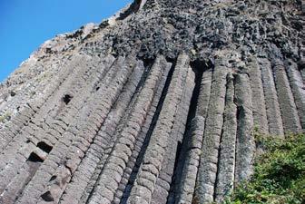 The curved hump on a basaltic dyke sitting at the bottom of the cliffs led to this rock formation being called the camel. In the Fionn mac Cumhaill story, the camel was the only beast that could carry the giant but was sadly turned to stone.