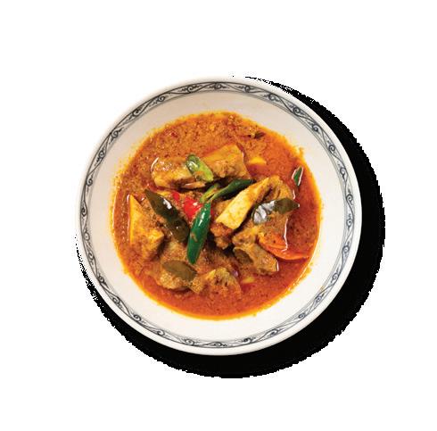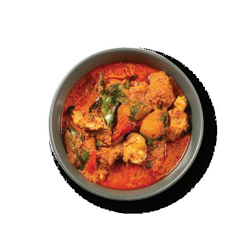 Galangal, shallot, lemongrass, red turmeric, Chilli, coriander, kaffir lime