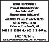 2xNomAll-American125,000lbCow2019,AgedCow2018 1st150,000lbCow2020R+WAll-AmericanPAShow2020 3rdBestThreeFemalesAll-AmericanR+WShow2019 1stBestThreeNYSFairR+WShow2019withOvaltopLaddPRanait-Red[SeeLot21]and andOvaltopBarbwireSpark-Red[SeeLot59]