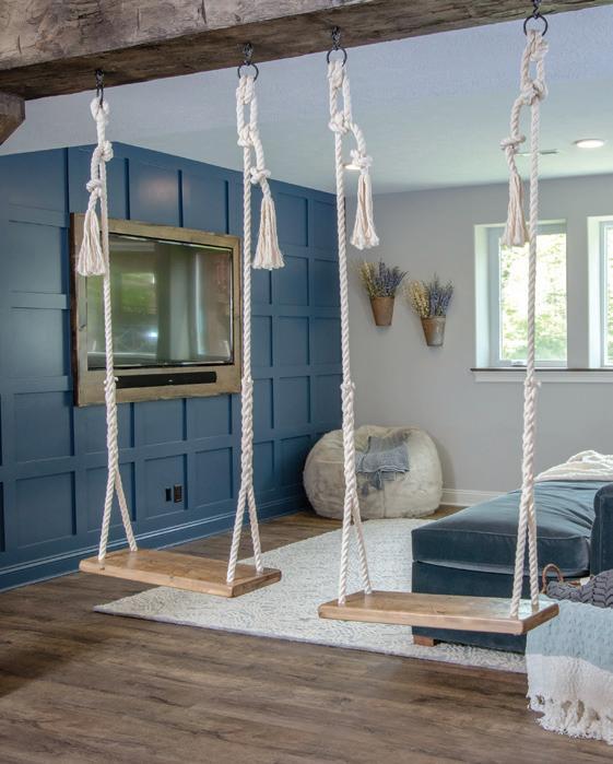 JILL CALO DESCRIBES AN ASSIGNMENT that sounds almost paradoxical: Turn the unfinished basement of a Solon home into an open area that’s both a casual entertaining venue and a children’s playroom — a place where kids can be part of a gathering or segregated from it as circumstances dictate.“[The homeowners] had needs that they were thinking of,” says Calo, lead designer and creative director for Payne & Tompkins Design-Renovations in Chardon. “But they didn’t know exactly how to implement [solutions].” Calo did. She achieved the seemingly impossible by designing a well-appointed space where the homeowners welcome guests and their two school-age daughters swing from the rafters and write on the walls — well, at least one of them.