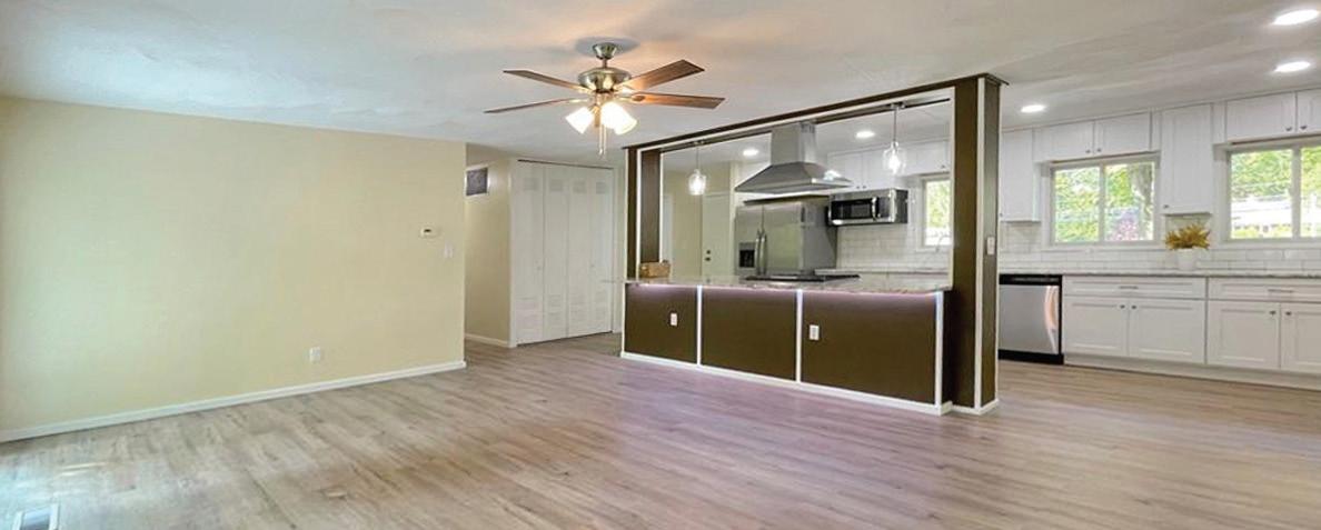 Contractors framed, insulated and drywalled the entire lower level, painted it light gray and laid a luxury vinyl plank floor.