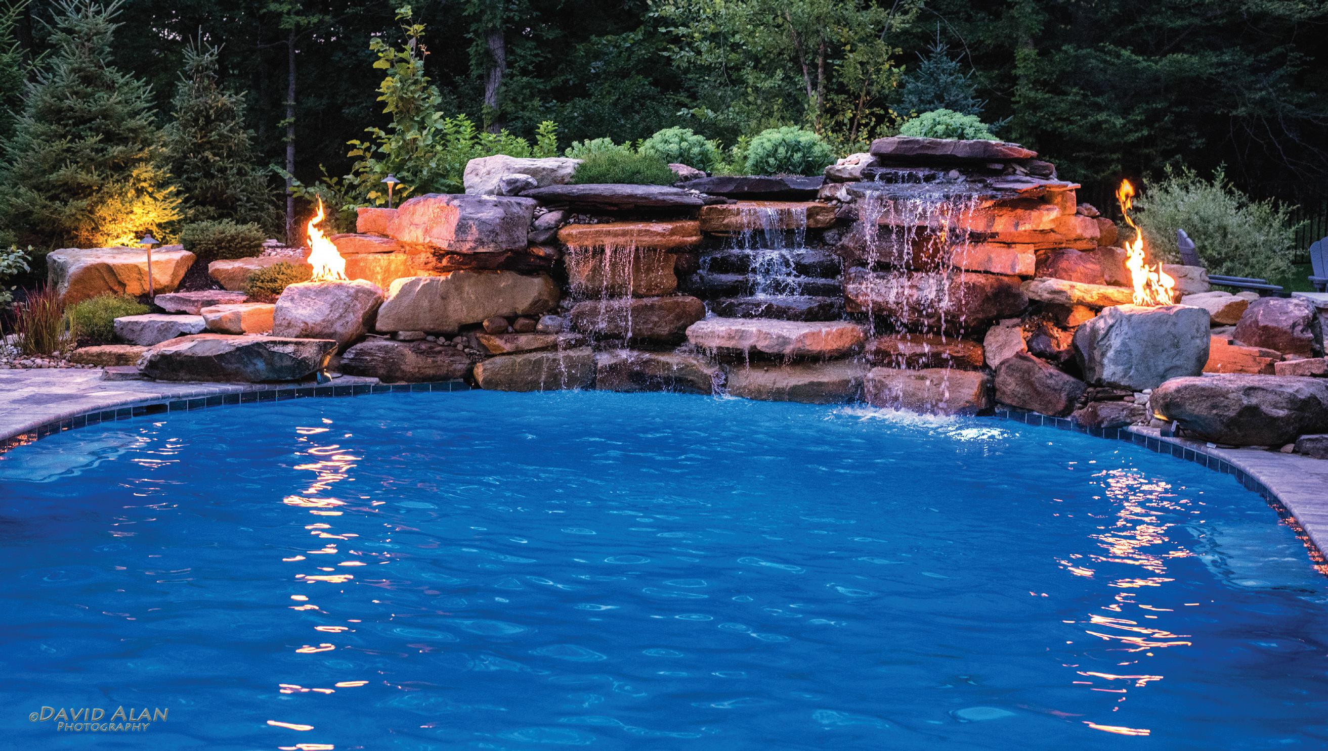 Rocks were cantilevered over the pond’s perimeter to fashion an organic shape and stacked vertically along its sides.