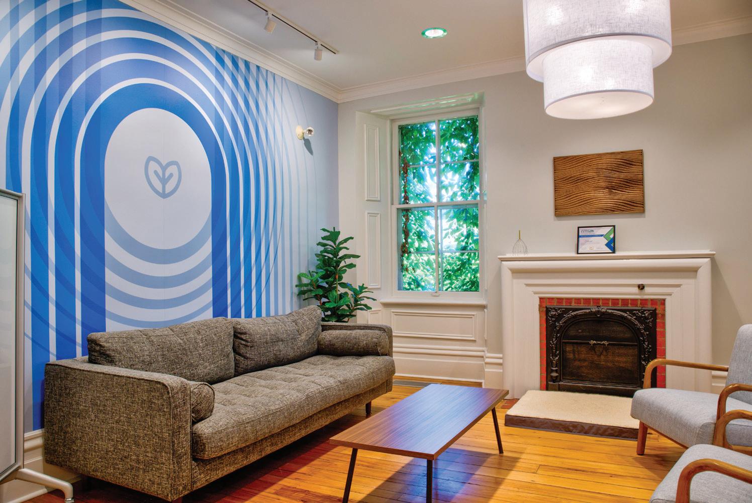 sit-stand desks, large monitors and everyone has access to natural light,” she says. “Because doing great work shouldn’t mean sacrificing your mind and body for results. We now have a space that inspires wellness and fosters collaboration,” she adds. “It’s an environment that nurtures mind, body and spirit and promotes a balanced approach to work and life,” says Terrien.