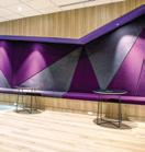 The resulting solution saw curved bulkheads created using an Armstrong Frameall grid with seamless acousticbuilt panels and high-performing recessed acoustic ceiling tile systems.