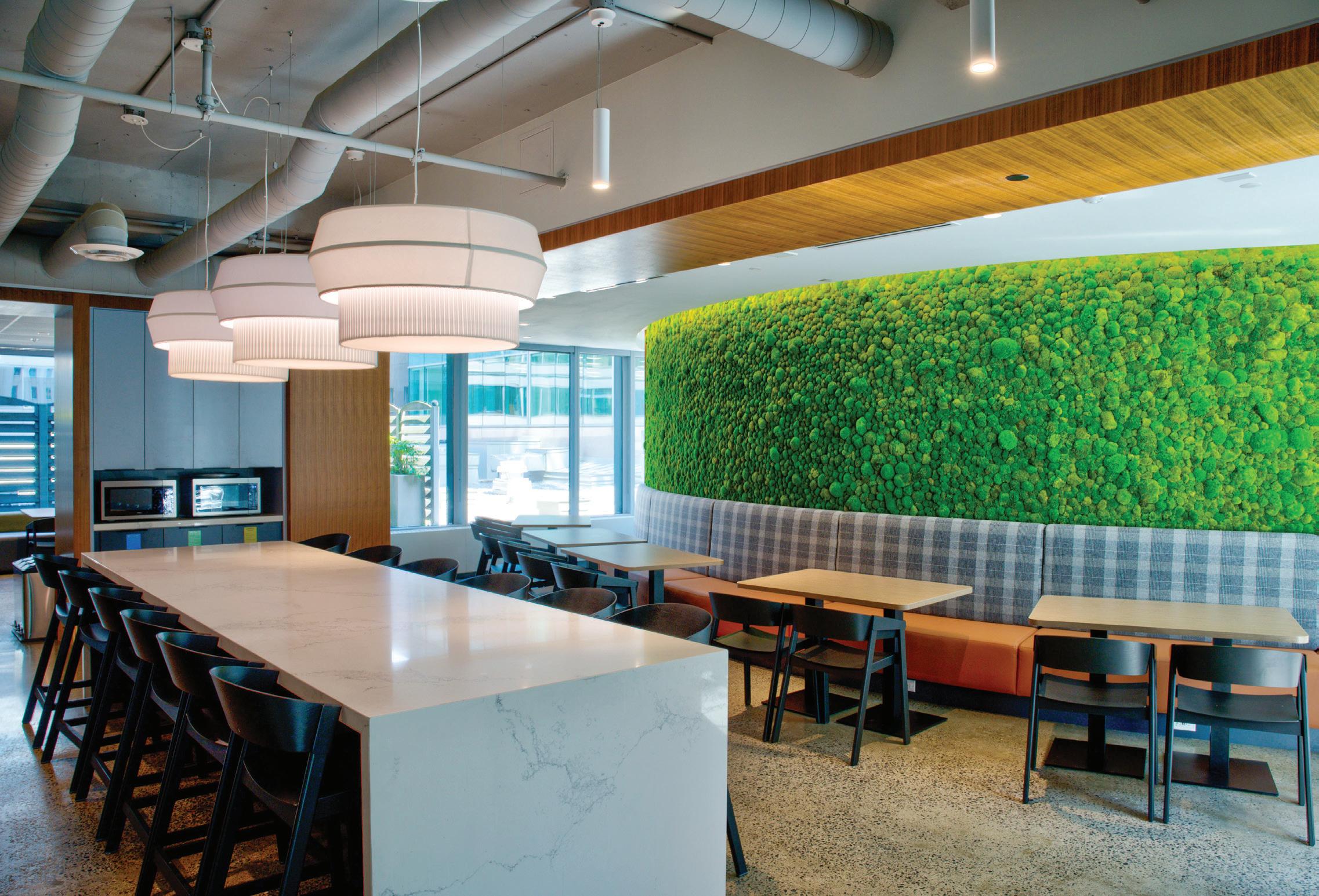 that embraces the hybrid work model and offers a space that enhances people’s health and productivity. The team created a destination space that people are going to want to come to. It’s the idea of that magnetic place,” says Westlund.