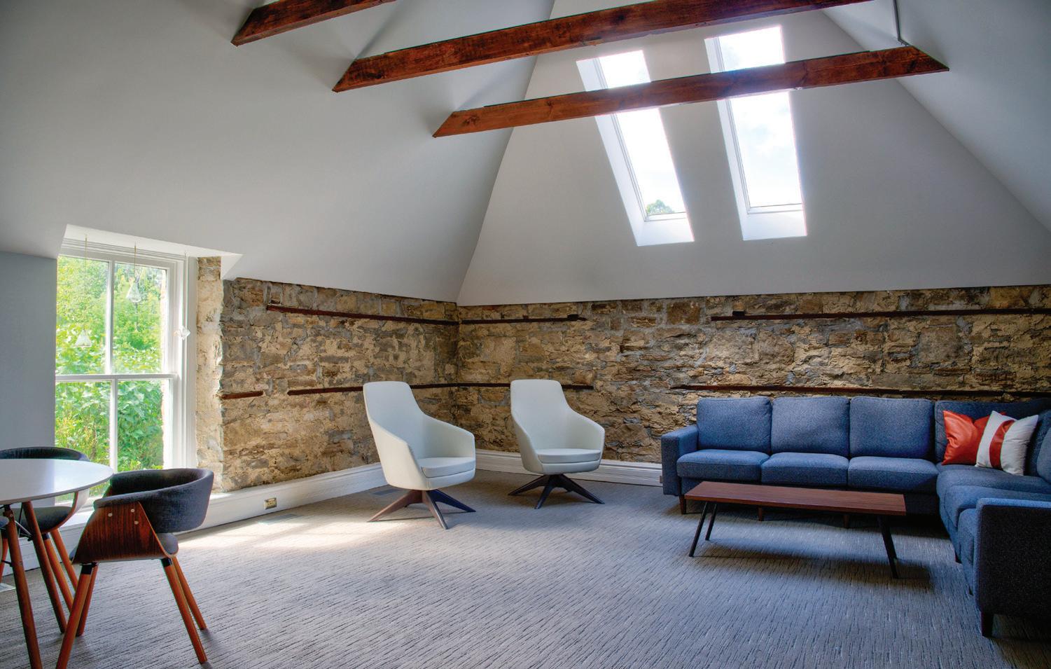 The designer stayed true to the bones of the home, veering away from the look of the more traditional office space. The historic Monk House is used for connection and collaboration, while the adjoining office accommodates up to 55 people in a more classic work environment. Wild turkeys and deer may be co-workers, and there is an outdoor patio and barbecue available to spice up the workday. The space is adjacent to the Monk Environmental Park, so if anyone wants to commune with nature to clear their head and spark new ideas, it is just on their doorstep. “It is meant to feel like a spa,” says Tyrie. “The Retreat in Kanata is unique. There’s absolutely nothing like it in the tech park.”