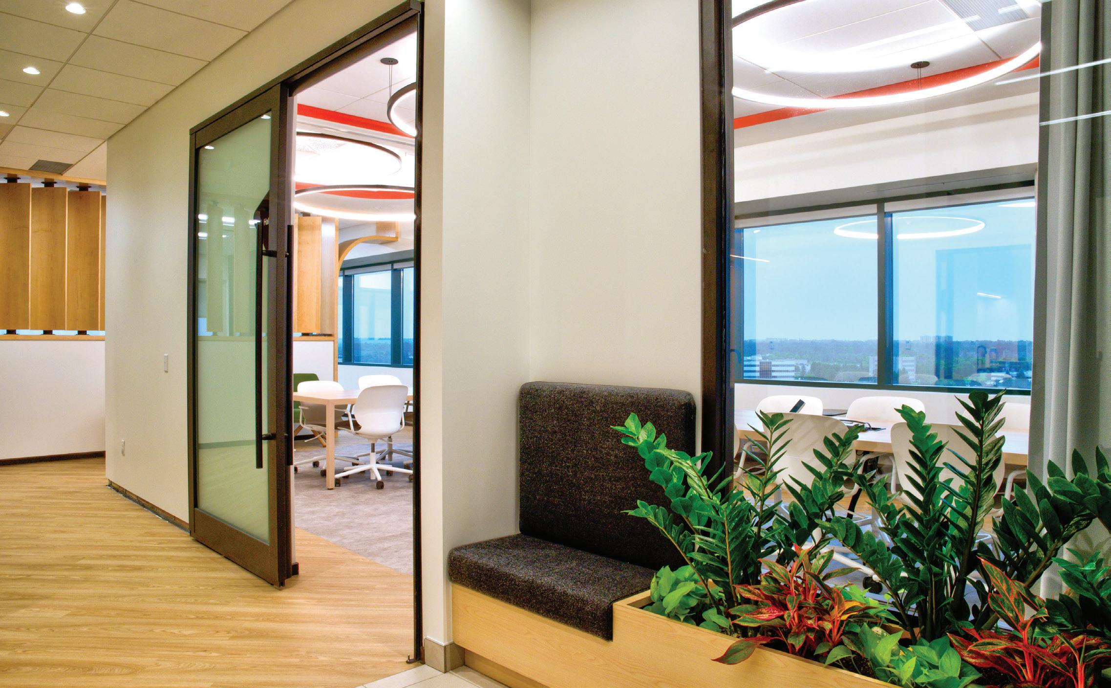 design elements with biophilic design practices to act as a common thread tying the space together,” says Craig Gillier, associate architect at Chmiel.
