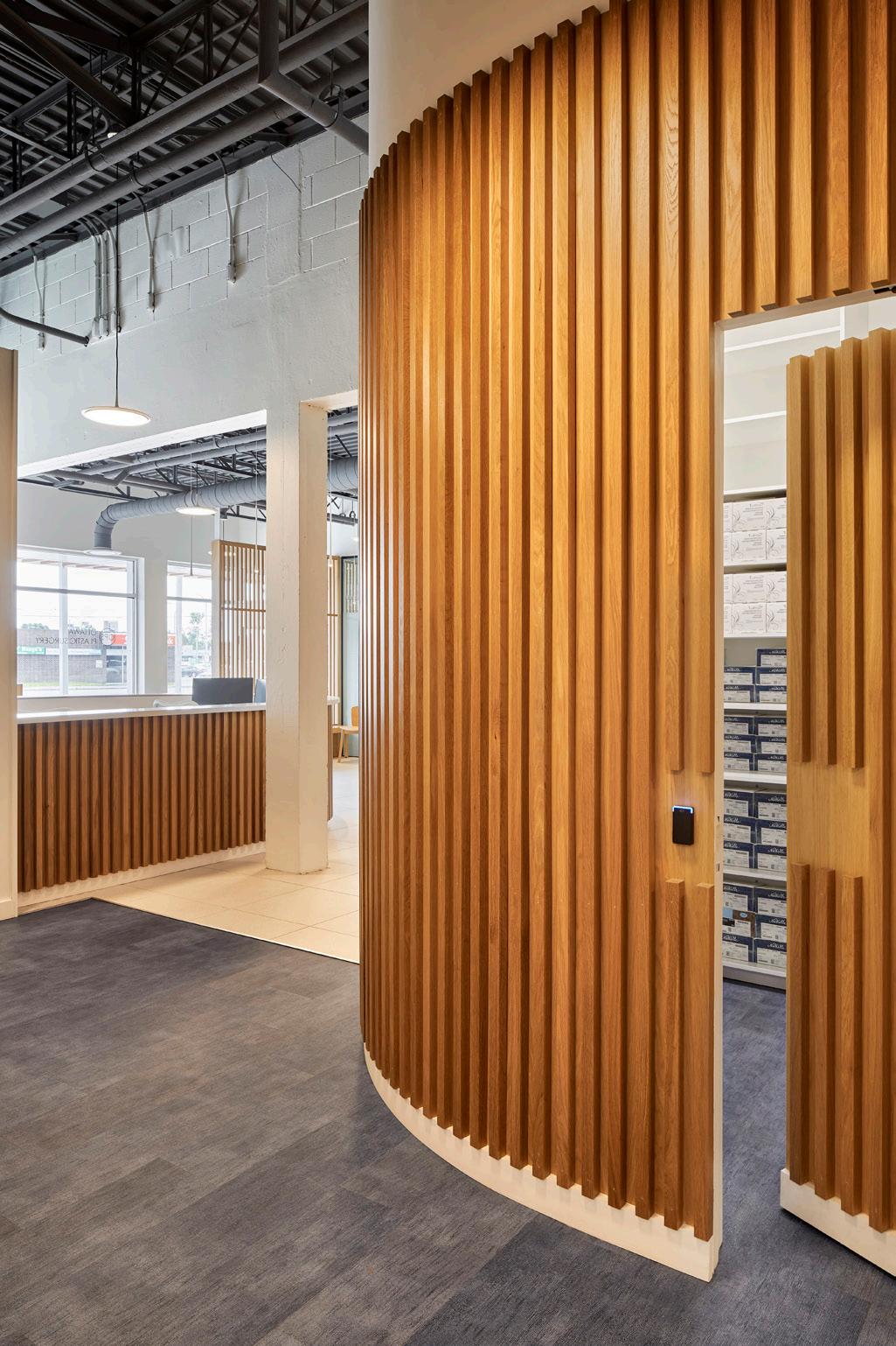 experience-based design,” says Wiens. “What is the experience of the people coming into the space? They should be having a good experience, so the colours and finishes and how the spaces are articulated has a huge impact on that. We