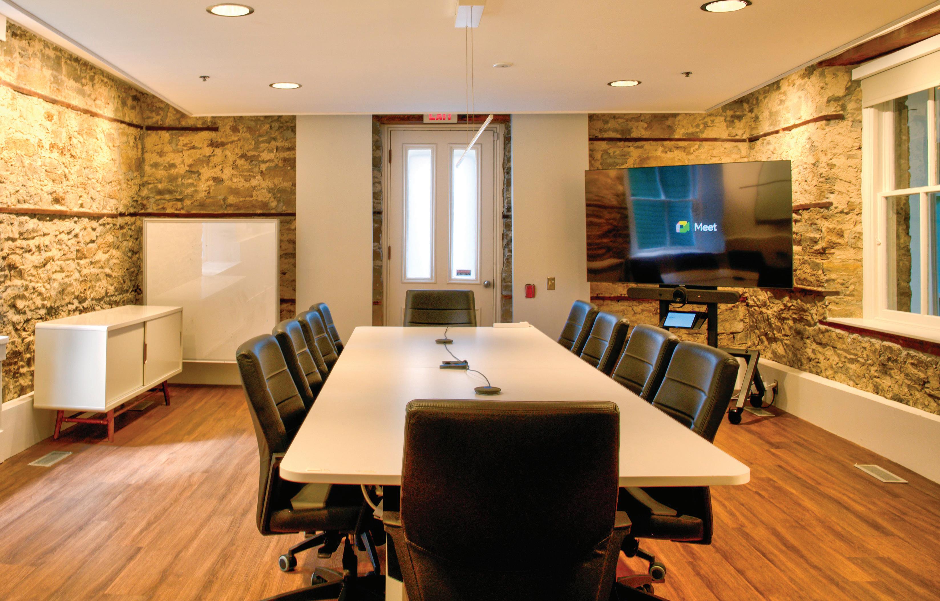 “We help enhance their design by adding in the AV for a better user experience, so that’s where the marriage is, between the designer’s look and feel of the office space, and we just add to that and to ensure that it works with the touch of a button when they walk in without detracting from what the designers have intended and accomplished for the space,” Dougall says.