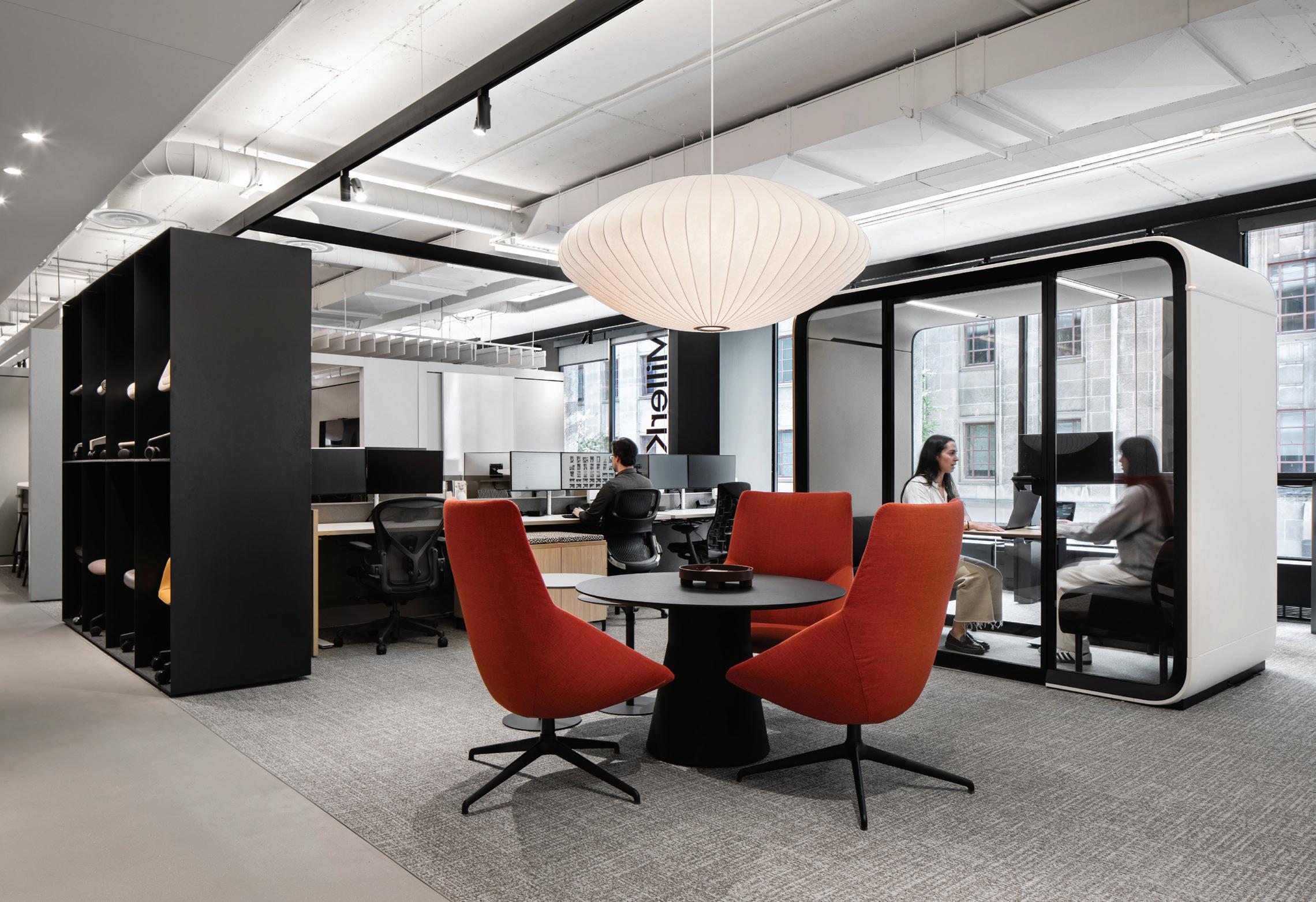As we venture farther into the space, a strong cross-section of products from the collective of 15 MillerKnoll brands has been selected for both function and style. The space delivers smart settings that improve work experiences at the