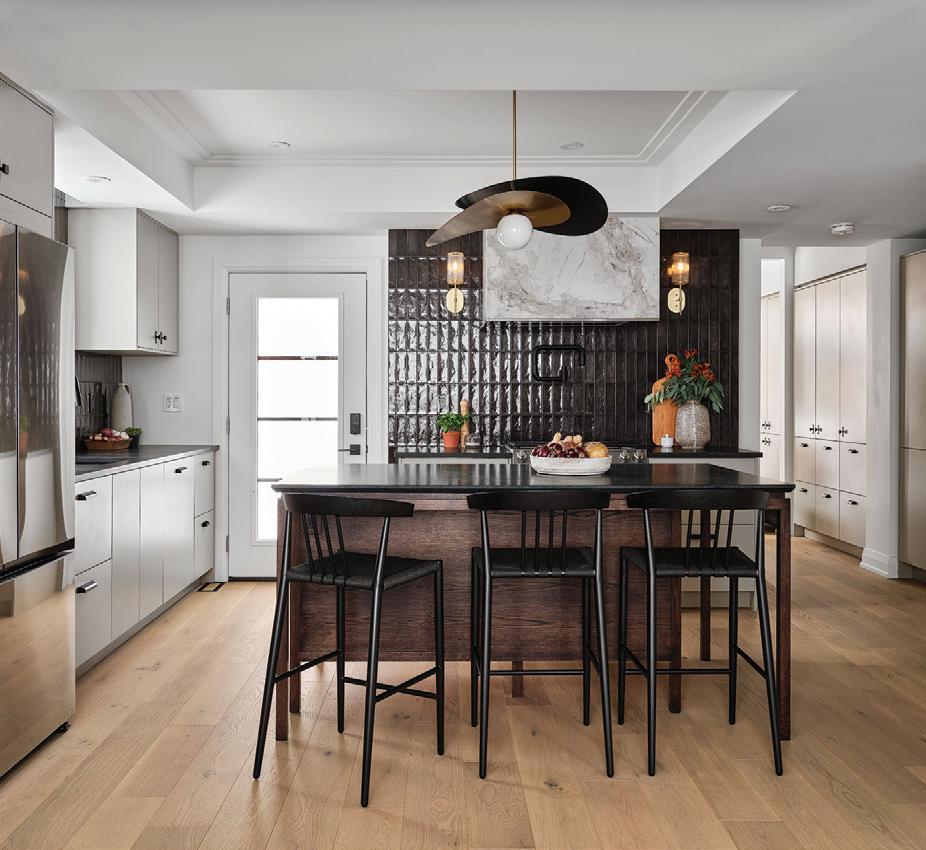 sprinkled throughout. Then there’s the custom kitchen island, designed by Rivellini and hand-made by Chelsea carpenter Nick Barna with legs and knife-edge detailing to look like a piece of furniture. “This is a work of art,” says Leo, who singles it out as one of his favourite parts of the home.
