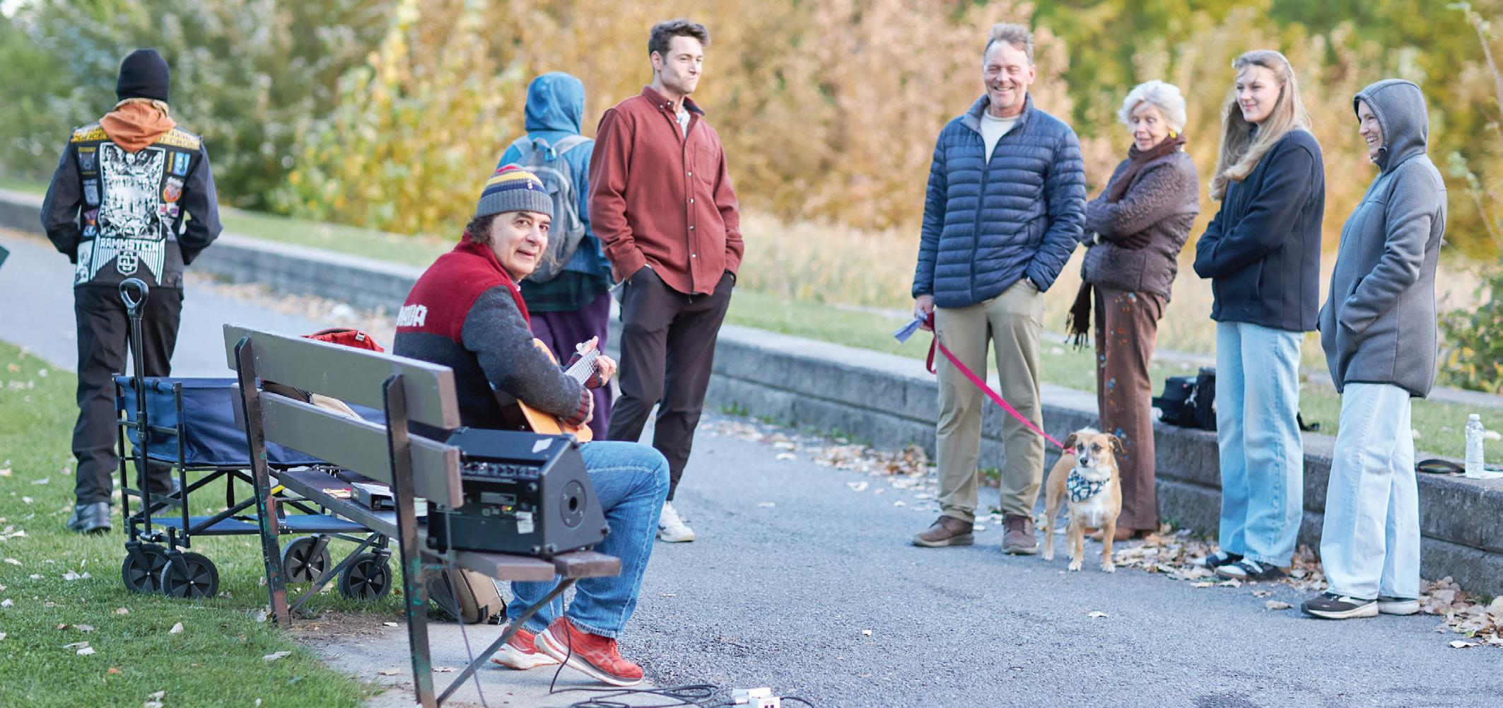Above: A group of onlookers stop at Britannia Beach to watch Sapounidis play on Oct. 14, 2024. ALL PHOTOS BY AARON REID.