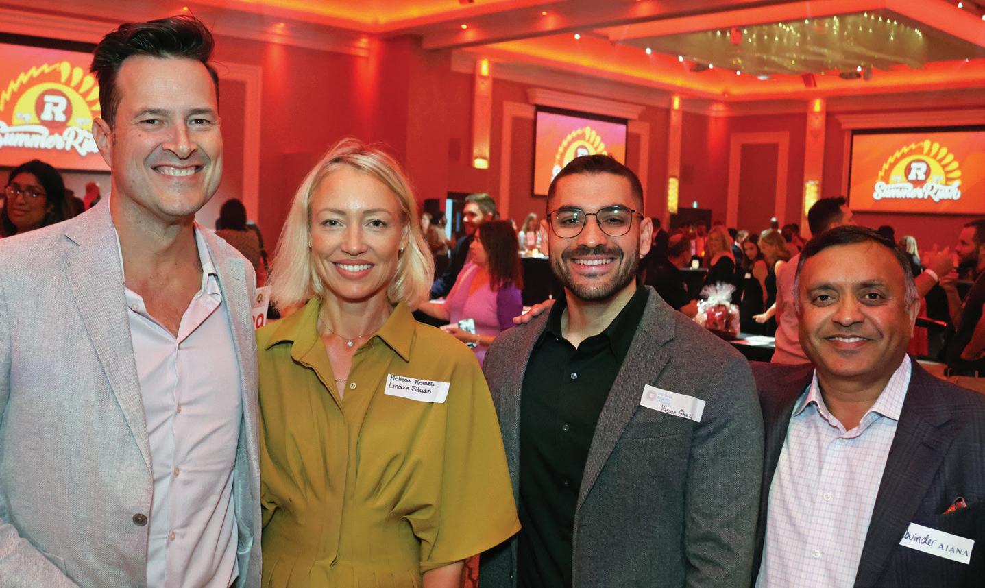 From left, Jonathan Gilman of Ottawa Interlock Repair, Keaton Ambrose of Chandos Construction, Josh Raganold of Welch LLP and Talia Silvestri of TD Bank co-chaired the Redblacks Summer Rush networking event and fundraiser for the OSEG Foundation.