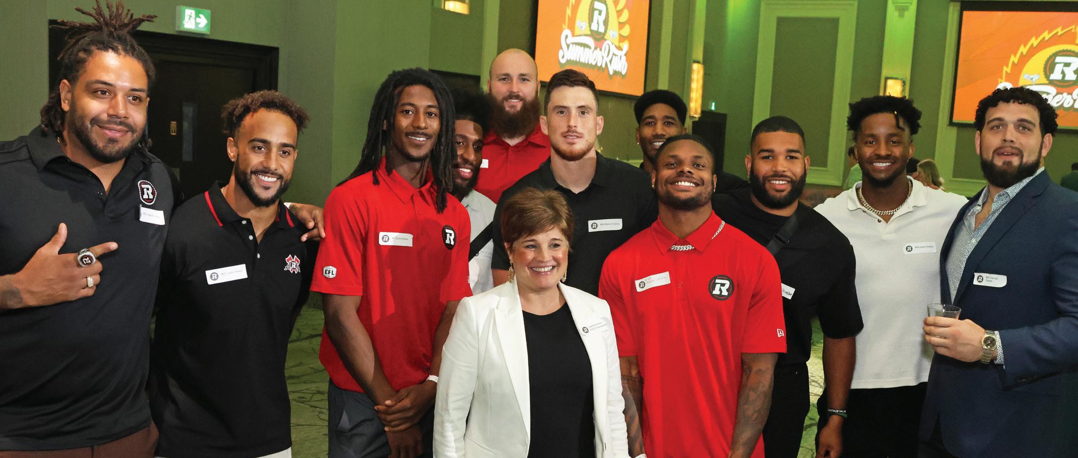 Lisa Nicholson, senior manager of special events and sponsorship for the OSEG Foundation, surrounded by members of the Ottawa Redblacks team for its Summer Rush networking event and fundraiser.