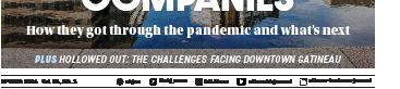Rue Mirabeau, Anjou, QC H1J 1T7 DISTRIBUTED BY Comet 2000 All content of Ottawa Business Journal is copyright 2024. Great River Media Inc. and may not be reproduced in any form without permission of the publisher. Publisher’s Liability for error: The Publisher shall not be liable for slight changes or typographical errors that do not lessen the value of an advertisement. The publisher’s liability for other errors or omissions in connection with any advertisement is strictly limited to publication of the advertisement in any subsequent issue or the refund of monies paid for the advertisement. A guaranteed minimum of 10,000 copies are printed and distributed. Ottawa Business Journal is published by Great River Media PO Box 91585, Ottawa, ON K1W 1KO obj.ca LETTERS TO THE EDITOR We welcome opinions about any material published in the Ottawa Business Journal or issues of interest to local businesspeople. Only letters with the writer’s full name, address and telephone number will be considered for publication. Addresses and phone numbers will not be published, but they might be used to verify authenticity. Letters can be e-mailed to editor@obj.ca. 05 DATEBOOK 06 COVER STORY: DOWNTOWN GATINEAU 08 REAL ESTATE: TOP 10 TRANSACTIONS OF 2023 25 HUMAN RESOURCES 31 TECHOPIA 37 EASTERN ONTARIO 42 OBJ.SOCIAL CONTENTS PRESIDENT Michael Curran CO-FOUNDER Mark Sutcliffe 26 Without a water cooler to gather around, it’s easy to become more isolated. In those cases, workers may begin to experience ‘home fever’ 43 SHEPHERDS OF GOOD HOPE From left: David Gourlay, Mary Taggart, Chris Taggart and Joe Thottungal. 46 31 15