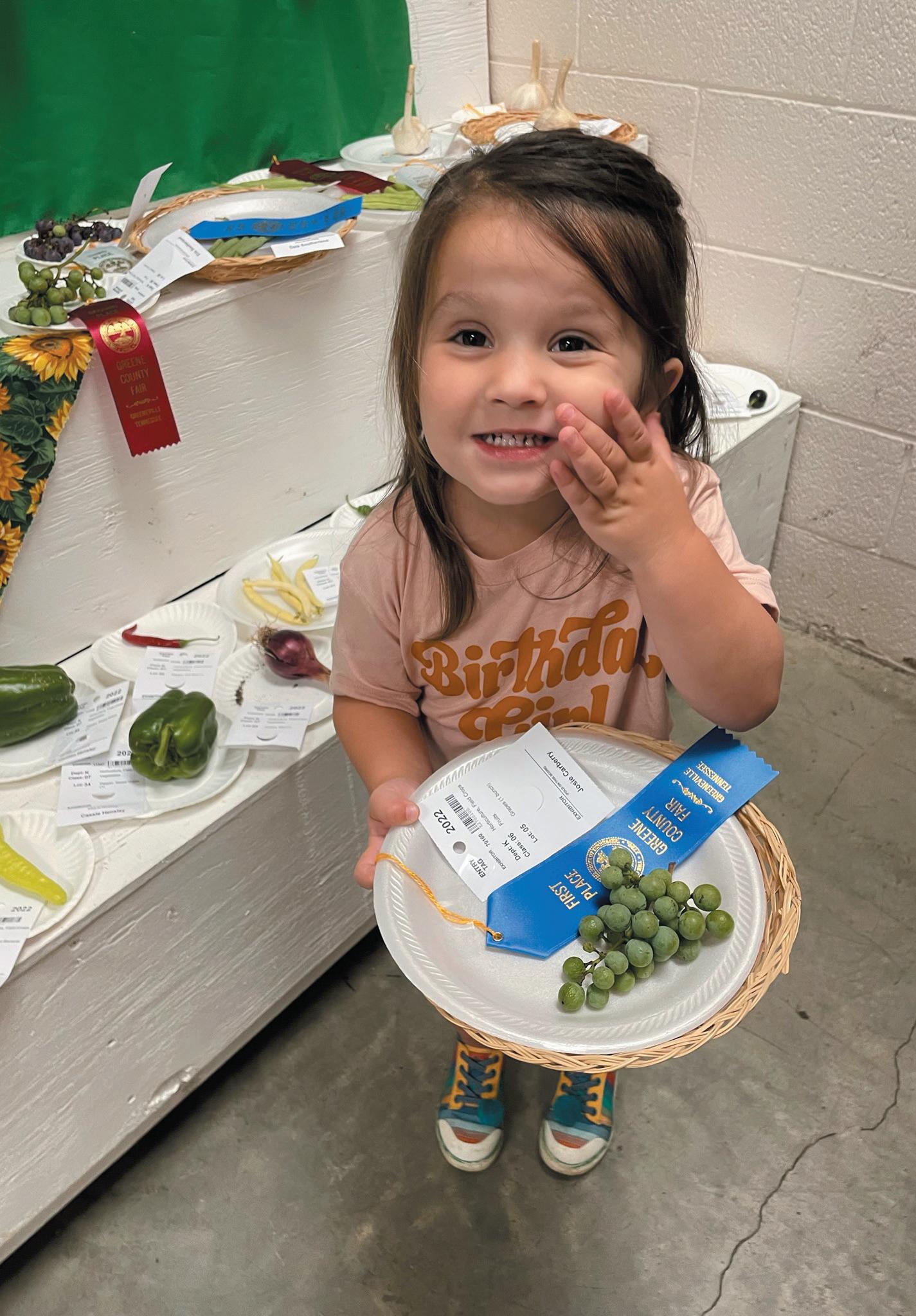 Lindsay Carberry shows off her blue ribbon she won at the Greene County Fair