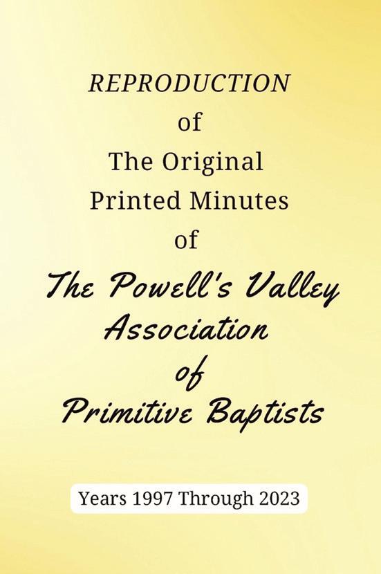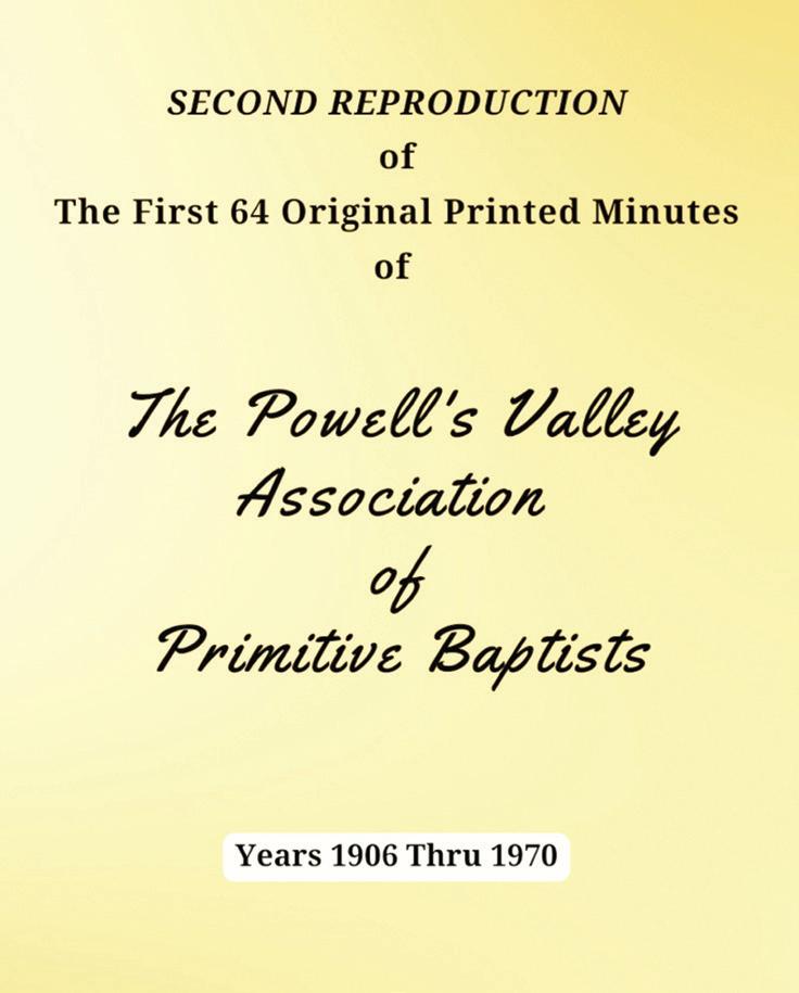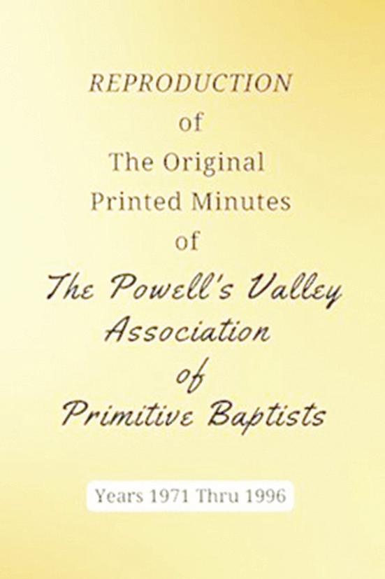 “Second Reproduction of The First 64 Original Printed Minutes of The Powell’s Valley Association of Primitive Baptists, Years 1906 Thru 1970,”“Reproduction of The Original Printed Minutes of The Powell’s Valley Association of Primitive Baptists, Years 1971 Thru 1996” and “Reproduction of The Original Printed Minutes of The Powell’s Valley Association of Primitive Baptists, Years 1997 Thru 2023”
