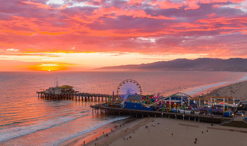 Santa Monica Peir at sunset.The local nonprofit supports many Santa Monica-based nonprofit agencies addressing homelessness, environmental protection, arts and education, workforce development, at-risk youth, elderly assistance, and more.