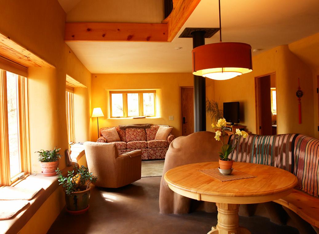 This compact Craftsman style home is built on a small urban lot in Capitola, California and features straw bale insulation, passive solar design, solar hot water, Photovoltaic panels, water harvesting, and permaculture landscape. Decorative earth/clay interior plasters. Energy star appliances. Total energy bills average $12/month.