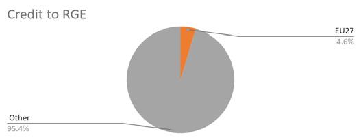 1. The report finds that since the adoption of the Paris Climate Agreement in December 2015, well over $1 trillion ($1,257bn / €1,156bn9) in global credit has gone to major corporate groups operating in these ecosystem risk sectors, along with $693bn (€638bn) in current investment. The EU financial sector (including non-EU subsidiaries) provided 22.1% ($278bn / €256bn) of this credit, while EU FIs also hold 9.4% ($65bn / €60bn) of investment in the groups concerned.