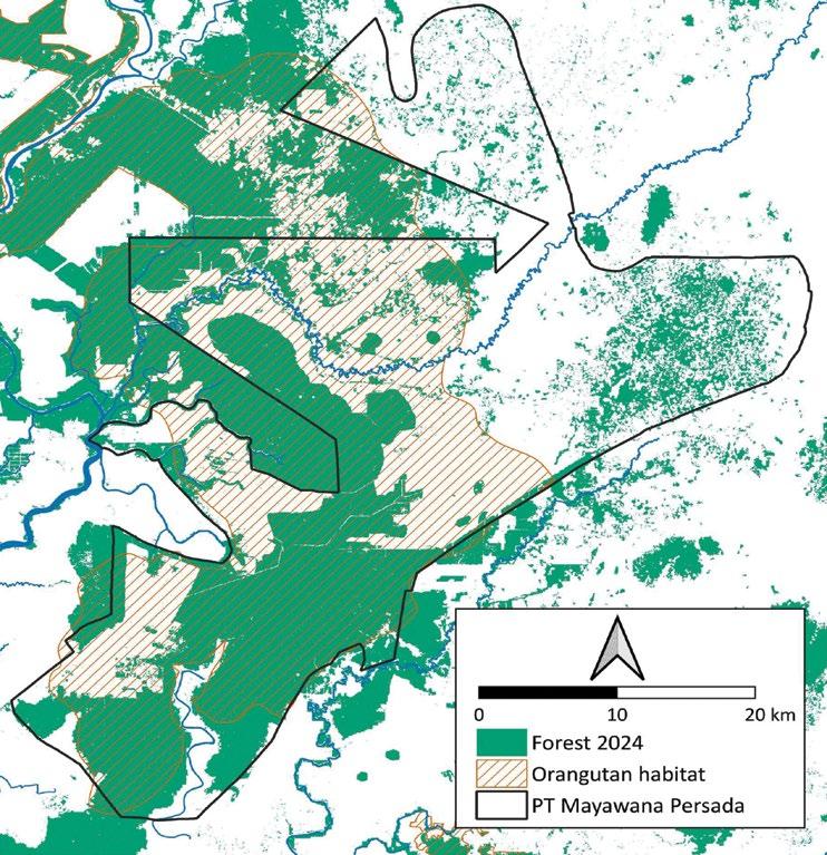 Tabel 1. Deforestasi dalam konsesi PT Mayawana Persada, 2021–2023 9 Gambar 1. Deforestasi di konsesi PT Mayawana Persada, 2001–2023. .............................10 Gambar 2. Habitat orangutan di dalam dan dekat dengan area konsesi PT Mayawana Persada menurut IUCN. 17 Tabel 2. Status keterancaman spesies penting di dalam atau dekat wilayah konsesi PT Mayawana Persada. .........................................................................18 Gambar 3. 20 kreditor utama RGE, 2018 – September 2023, dalam juta dolar Amerika. ..............23 Gambar 4. Struktur kepemilikan PT Mayawana Persada. ..........................................25 Gambar 5. PT Mayawana Persada memiliki pengurus perusahaan yang sama dengan perusahaan-perusahaan yang terhubung dengan RGE. ..........................................27 Gambar 6. Cuplikan halaman web Apical dan RGE. ...............................................29 Gambar 7. Rute pengiriman kayu dari dermaga PT Mayawana Persada di Sungai Kualan ke dermaga PT Asia Forestama Raya di Sungai Siak pada bulan Agustus 2023. .....................33 Tabel 3. Rencana peningkatan kapasitas pabrik RAPP di Pangkalan Kerinci di Propinsi Riau. ........36 Tabel 4. Proyeksi kebutuhan kayu Grup RGE setelah ekspansi kapasitas pulp di pabrik RAPP dan pengembangan pabrik Phoenix. ......................................................36 Tabel 5. Proyeksi kebutuhan luas perkebunan untuk ekspansi kapasitas pulp yang direncanakan di pabrik RAPP, berdasarkan asumsi peningkatan sebesar 50% dari tingkat hasil panen saat ini (2022). 37 Gambar 8. Struktur korporasi PT Phoenix Resources International dan keterkaitannya dengan Grup RGE. .............................................................................40 Tabel 6. Proyeksi kebutuhan luas perkebunan untuk rencana ekspansi kapasitas pulp di RAPP dan pengembangan pabrik Phoenix, berdasarkan rerata hasil panen saat ini (2022). .........41 Gambar 9. Penggunaan kayu pulp secara historis dan proyeksi