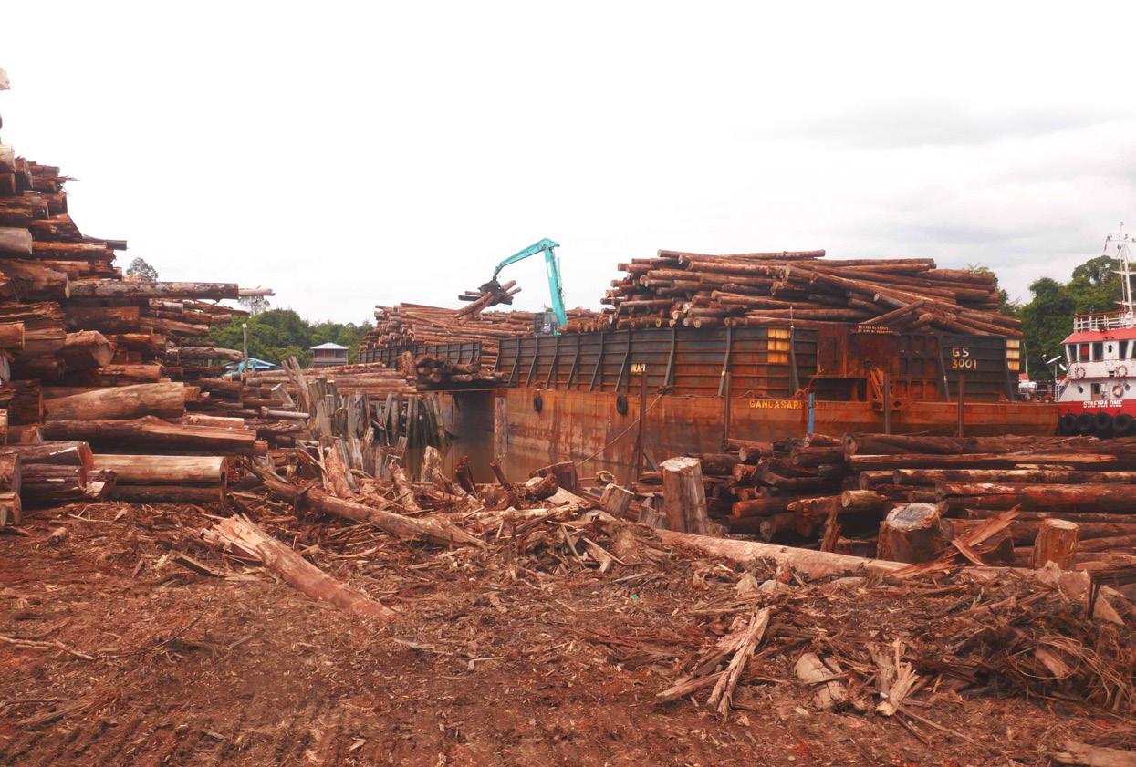 Cover: Rainforest logs being loaded onto a barge at the jetty of