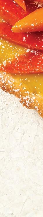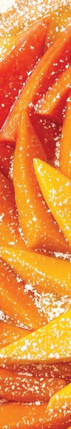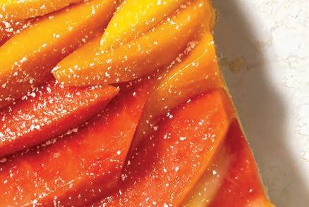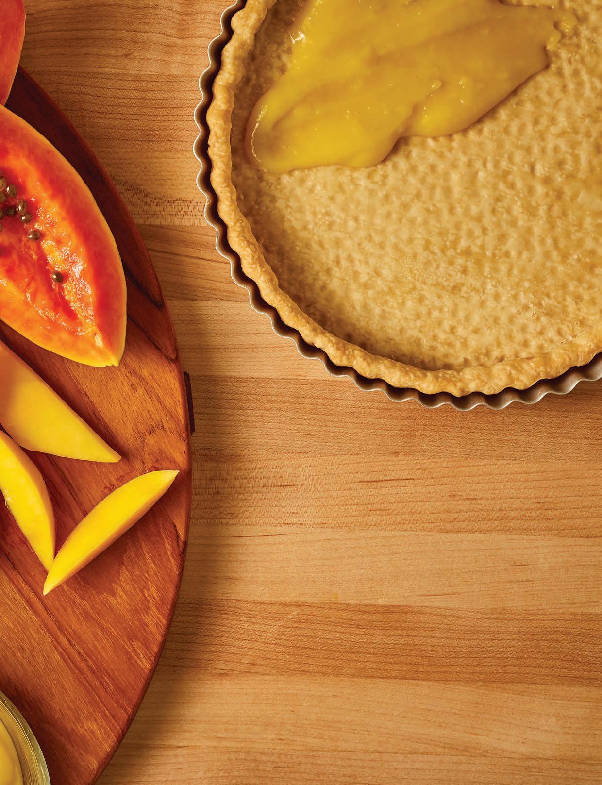 Two of the world’s finest tropical fruits flood the produce aisles each summer. With colors ranging from golden yellow to deep red, and esh as sweet and tangy as candy, mangoes and papayas begin piling up for the season at the end of May and will run until September. This is the best time to try a ripe tropical treat. If you are not sure how to handle these fruits, here are some tips on selecting, peeling and cutting them, as well as a tropical tart recipe that features both delicious fruits.