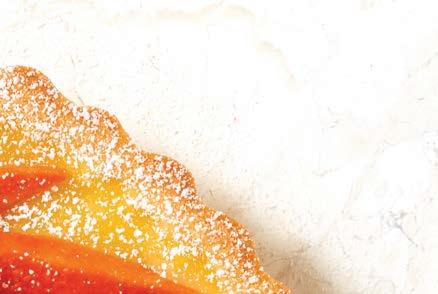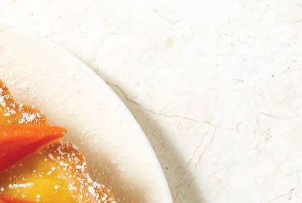 It’s hard to go wrong when it comes to pairing this refreshing twist on wine. Like red wine, the bolder avors of red sangria marry well with sizzling steak o the grill as well as burgers and pork. Pay homage to sangria’s Spanish heritage with tapas, or shareable small plates, with bite-size pieces of grilled sausages— chorizo for a spicy kick—Manchego cheese, olives and Marcona almonds. Serve white sangria with a creamy chicken pasta or a cold chicken pasta salad. Seafood is a classic partner with white wine and goes well with white sangria—lobster or lobster rolls and crab balance well with the wine-and-fruit combination. Sangria’s acidic touch plays nicely against so , creamy Brie cheese and savory-sweet prosciutto-wrapped melon.