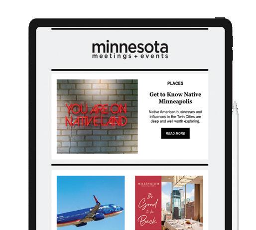 THE TWIN CITIES IS SO ACCESSIBLE AND EASY TO TRAVEL IN, WITH GREAT OPTIONS IN THE URBAN CORES AND OPPORTUNITIES TO EXPERIENCE AN OFF-THEGRID FEELING WITHIN CLOSE PROXIMITY OF THE AIRPORT.” –KALSEY BEACH , president, Do Good Events