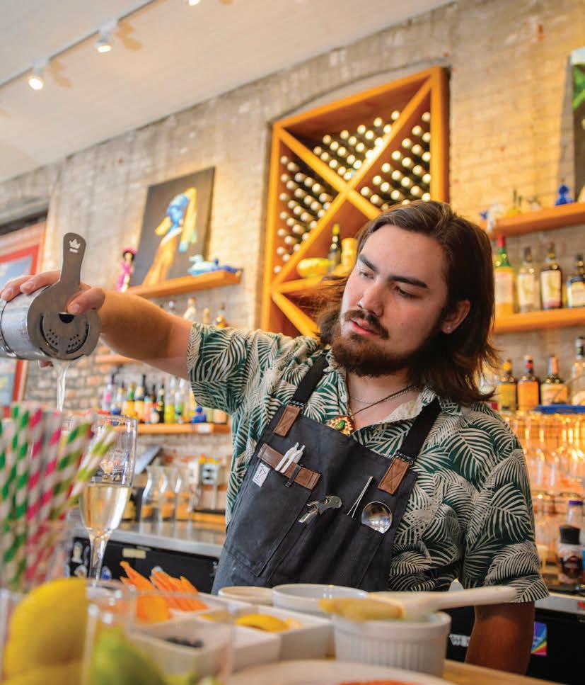 1. Having an expert on hand throughout the planning process and during the event itself is a must—hiring a mixologist for your gathering is a great way to ensure everything is crafted well. While the title might be more honorary than formal, a mixologist differs from a traditional bartender in that they tend to have a more specialized knowledge of cocktails and thus are able to craft one-of-akind experiences. Attendees can provide a mixologist with their preferred base liquors, flavors, and garnishes, which the mixologist will then use to concoct something special.