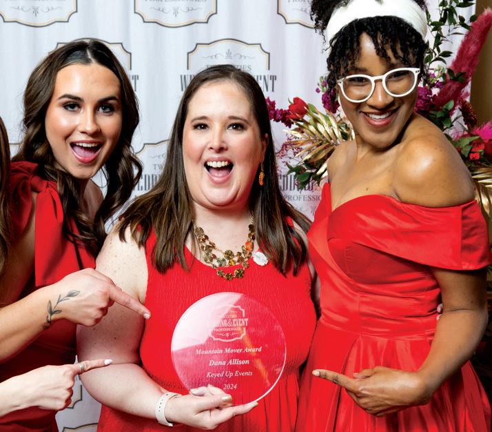 The Twin Cities Wedding & Event Professionals (TCWEP) held its 15th anniversary celebration, the Red Gala and Award Show, in the Red Cap Room at Union Depot in St. Paul in early April. Award-winners included Dana Allison of Keyed Up Events, Jessica Knighton of Jessica Knighton Photography, Tami Cabrera of Muddy Paws Cheesecake, Ryan Veil of Studio Veil, and Amy Lund of Big Guys BBQ Roadhouse. Categories ranged from “Mountain Mover,” for individuals who went above and beyond, to “Rising Star,” for up-and-comers who have grown through networking. Catering was provided by Chef Jeff Catering and Hightop Hospitality. Desserts came from Muddy Paws Cheesecake and Villa Valley Goods, and Crave Catering and Events ran the bar.
