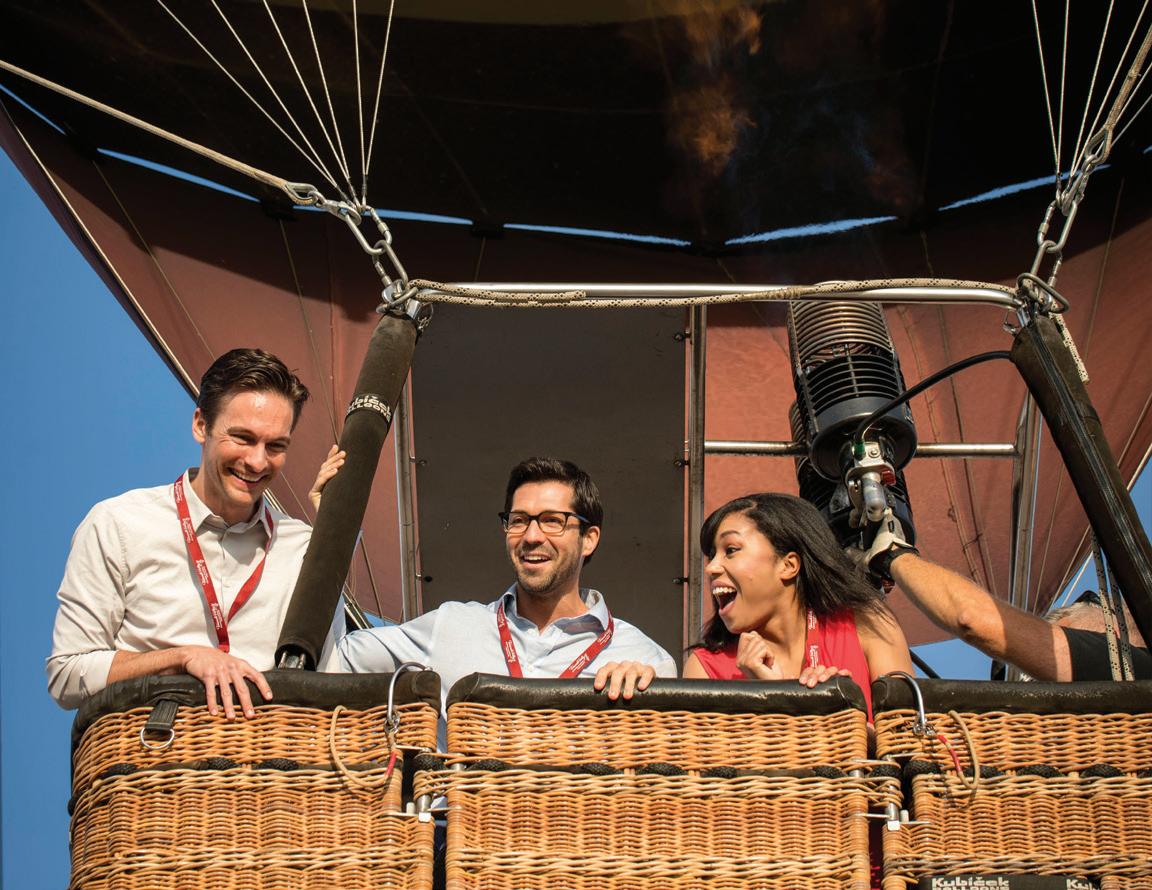 Team-building activities abound in the area, from flooring it on the track of the BMW Performance Center West, ascending more than 8,500 feet aboard the Palm Springs Aerial Tramway, soaring in a hot air balloon, visiting the new Rhino Savanna at the Living Desert Zoo and Gardens, partnering with Big Wheels Tours for a 20-mile Earthquake Canyon Express Downhill Bike Adventure, or combining the Desert Adventures Red Jeep Tours with a scavenger hunt. And, of course, there is golf, tennis, hiking, shopping in downtown Palm Springs, museum hopping, and midcentury architectural tours.
