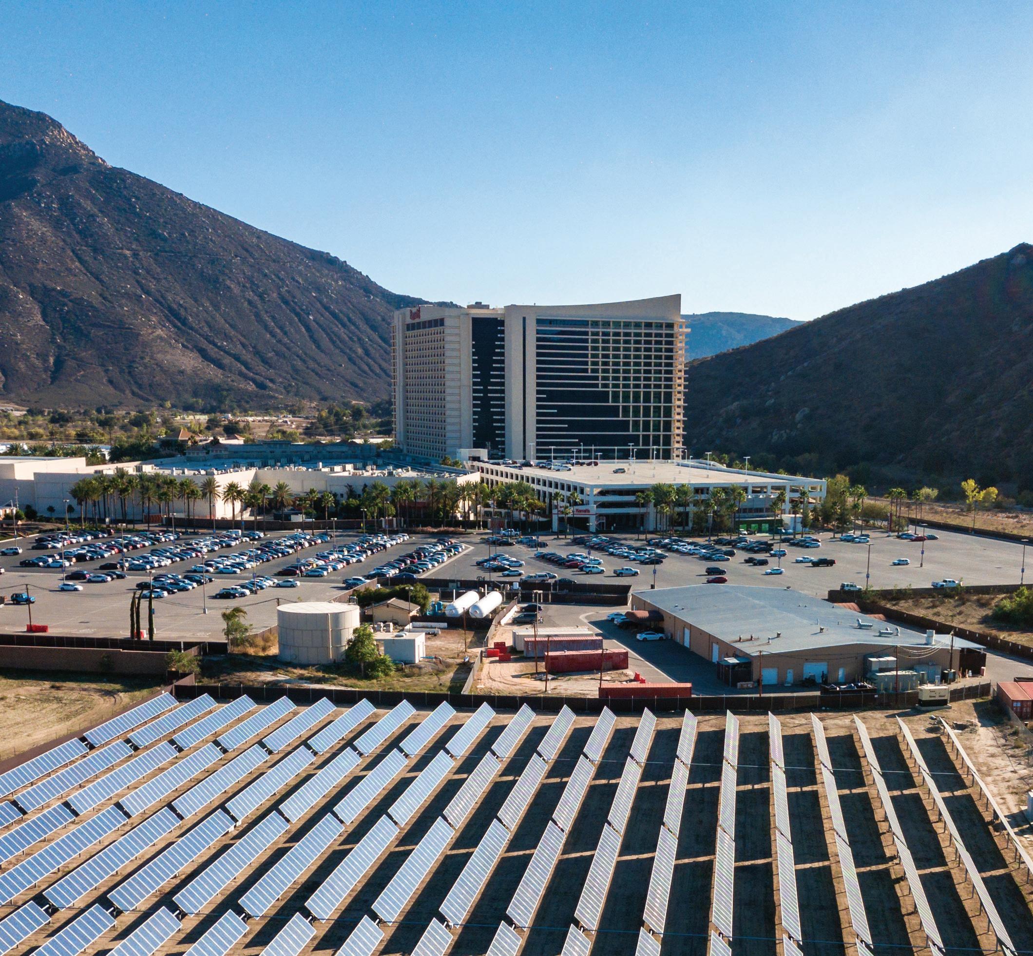 As MGM Resorts International did outside Las Vegas, many tribal casinos also turn to the sun for energy generation and to efficient lighting for energy conservation. In addition to being the first solar-powered casino in Southern California, Harrah’s Resort Southern California—operated by the Rincon Band of Luiseño Indians—has a wastewater treatment plant that generates reclaimed water for cleaning and irrigation, and a biodigester that turns food waste into water. At many casinos, tribal or not, much more efficient LED lights are largely replacing incandescent bulbs, not an insignificant trend given casinos’ tendency to use lights on everything from slot machines to video displays.