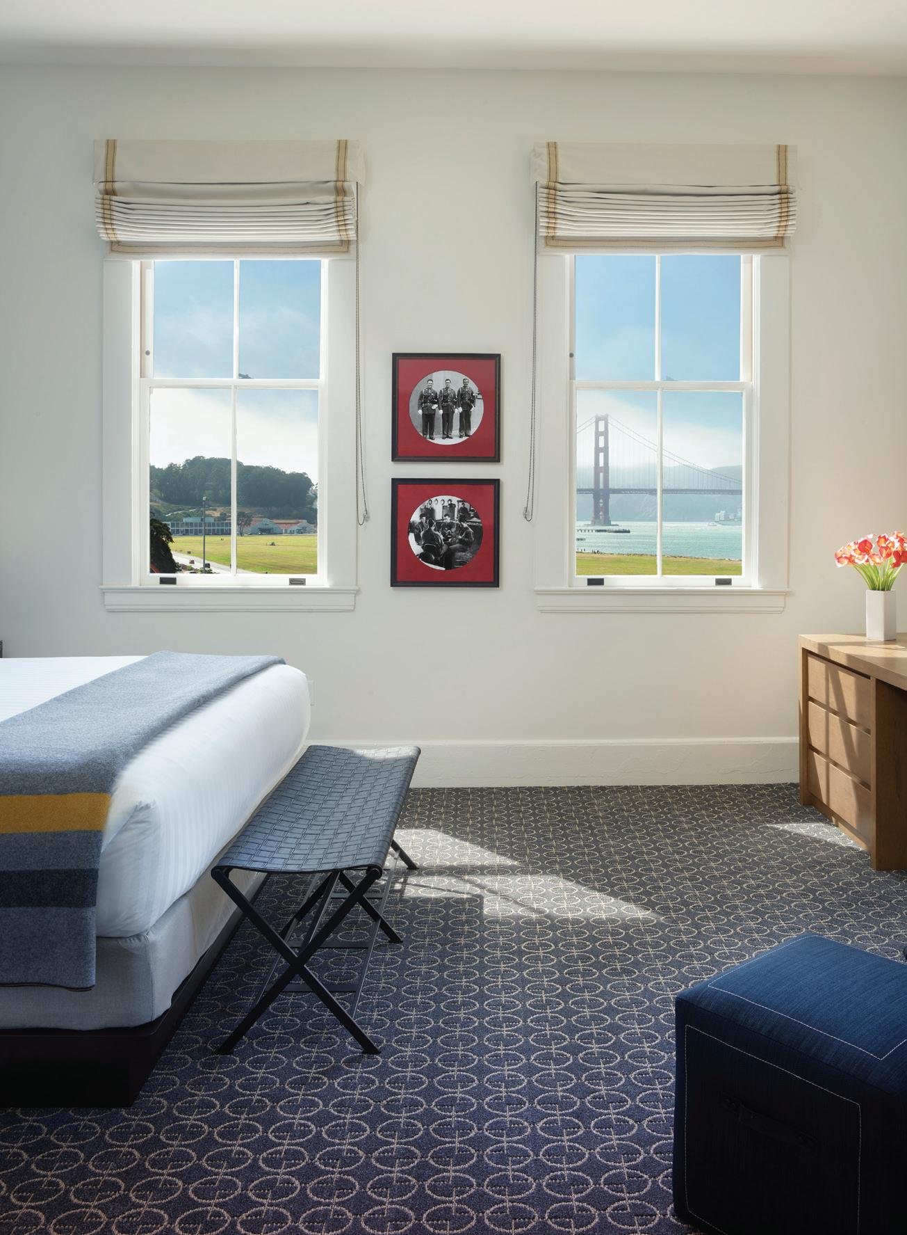 former military barracks with 42 guest rooms and unobstructed views of the Golden Gate Bridge. There is no dedicated on-site meeting space at the lodge, but a full buyout of the property is available and small meeting sessions can be arranged in the dining room. Nearby attractions include the 14-acre Presidio Tunnel Tops with 25 miles of trails, access to beaches, the Presidio Golf Course, and more. There is also access to Fort Point National Historic Site, which sits near the San Francisco terminus of the Golden Gate Bridge, just steps away from the Presidio. “Although it’s guns never fired shots against any aggressor, it was completed in 1861 to protect the San Francisco Bay’s important commercial and military installations around the time of the Gold Rush,” explains Julian Espinoza, public relations specialist for the national historic site. The San Francisco Maritime National Historic Park is farther east along the bay and is home to a fleet of historic ships from the late 1800s and early 1900s and a maritime museum.