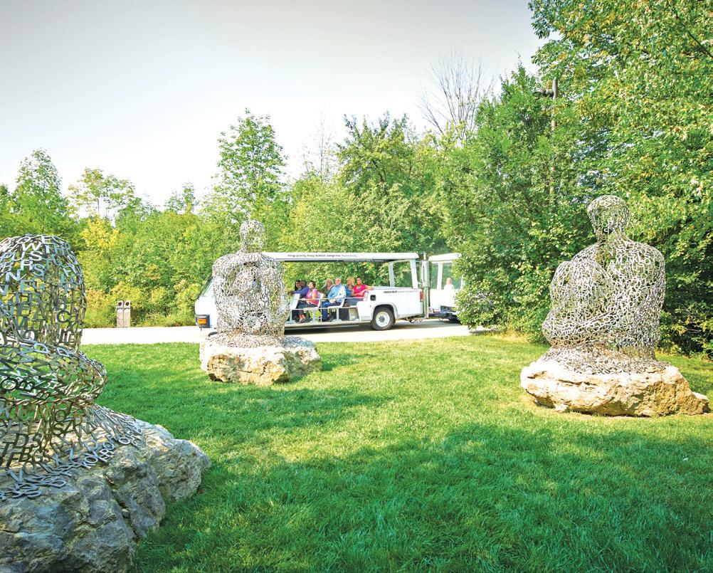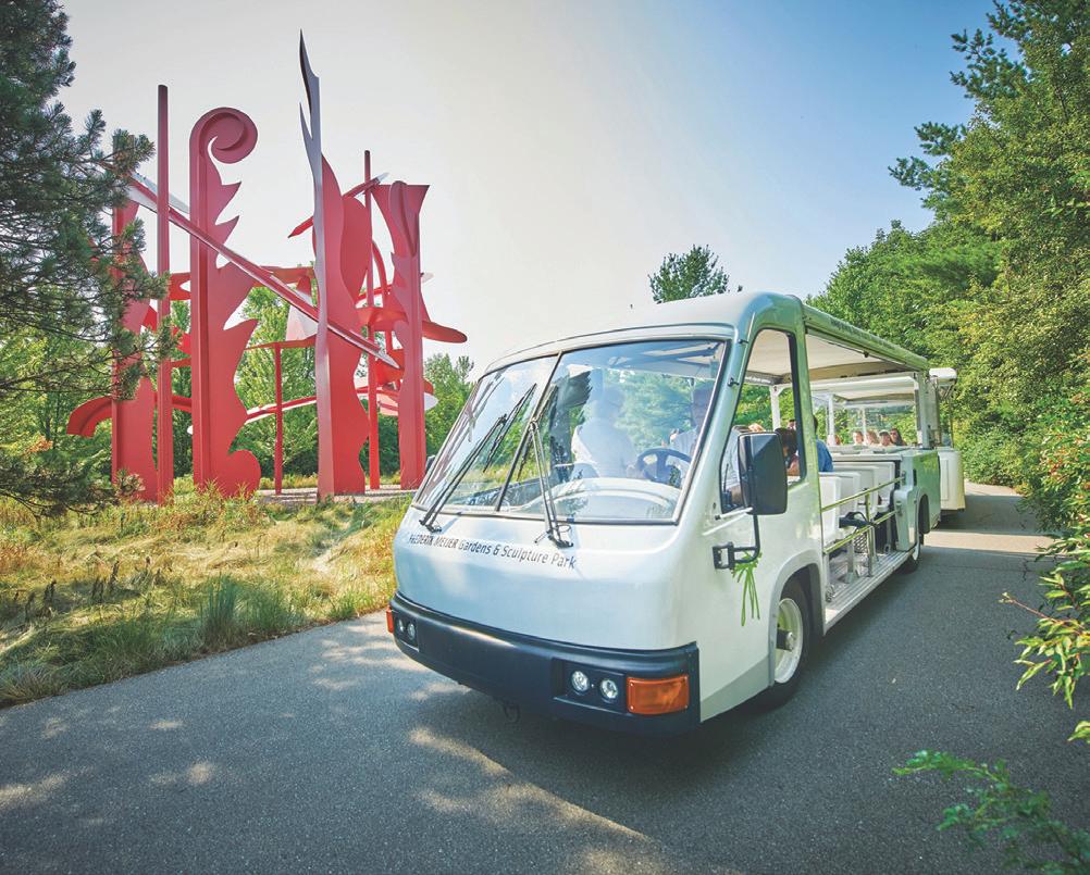 Frederik Meijer Gardens & Sculpture Park features bountiful gardens and more than 200 permanent collection works—indoors and outdoors—on a 158-acre main campus. Enjoy tours, programs, and interactive activities yearround. Printed materials lead visitors through changing exhibitions with overviews, thought-provoking questions, and highlights. Free public sculpture exhibition programs aid content and idea understanding through lectures, gallery walks, and demonstrations. Self-guided and docent-led tours are available for groups of 10 or more. A narrated outdoor tram tour runs seasonally, April through November. Please plan at least a few hours for visiting, to tour, and to enjoy the James & Shirley Balk Café and the DeVos-Keeler Gi Shop.