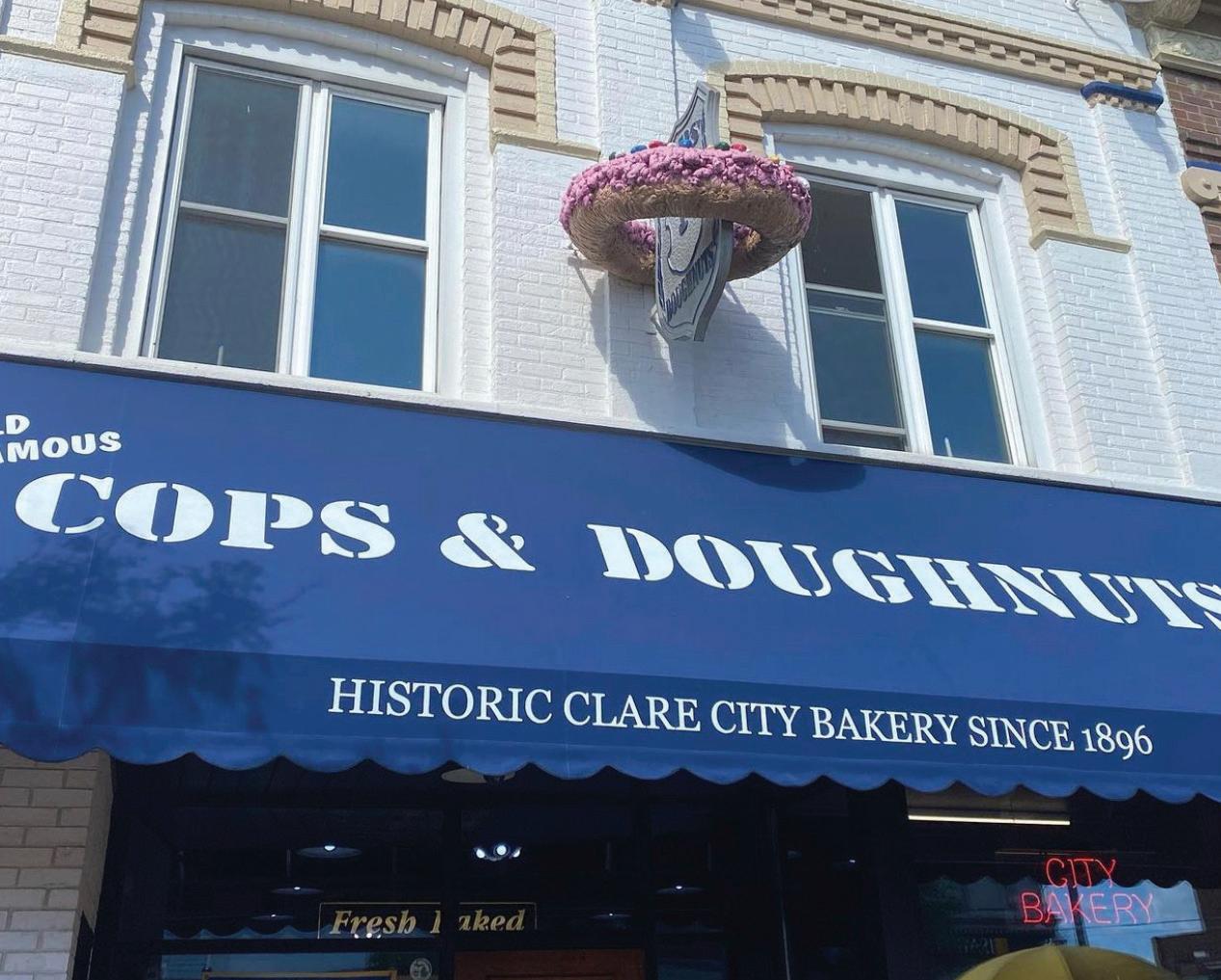 There is a doughnut shop and bakery in Clare that has been in constant operation since 1896. This foundation business was within weeks of closing when the mem bers of the Clare City Police Department came to the rescue. All of them. That’s right, all nine members of the local police department banded together and saved the historic doughnut shop and bakery.