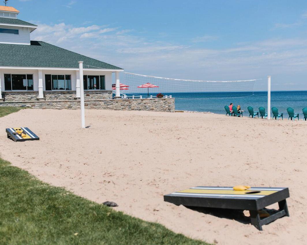Breakers Resort & Beach Bar amenities include access to Lake Huron beachfront, ample motorcoach parking, group dining options on-site, luggage handling, and access to Mackinac Island ferry services. The resort is within driving distance to Tahquamenon Falls State Park, Pictured Rocks National Lakeshore, the Soo Locks, and Kitch-iti-Kipi (The Big Spring).
