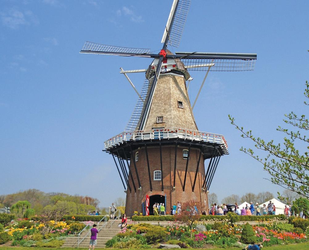 Experience a slice of old Europe in Holland, Michigan! Windmill Island Gardens features the historic, work ing windmill “de Zwaan” standing among 36 acres of exhibits, gardens, and natural areas. The mill still turns and grinds grain into flour—a tour up five floors is the highlight of any visit. Visitors are also welcome to watch a filmed tour of the windmill for background or if they don’t wish to climb. Tourgoers can enjoy tunes from a working street organ (a post-war gi from the city of Amsterdam); thousands of annuals and perennials in bloom during spring, summer, and fall; and tasty Dutch treats from the gi shop. Other exhibits include a Dutch kiddie carousel, replica buildings, hand-built maquette of the “old coun try,” and much more.