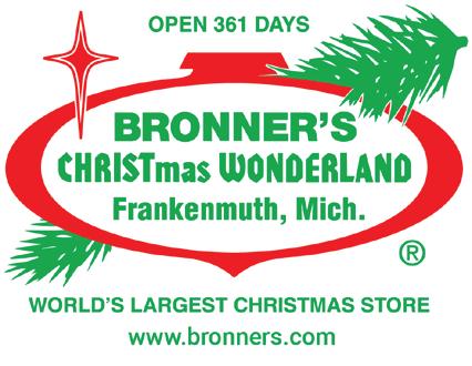 Celebrate the joy of Christmas 361 days a year at Bronner’s Christmas Wonderland, the world’s largest Christmas store, located just 86 miles northwest of Detroit in Frankenmuth. Guests of all ages enjoy Bronner’s fantasyland featuring shimmering lights, sparkling ornaments, and whimsical figures—a worldwide selection of over 50,000 trims and gi s! The size of 1.7 football fields, Bronner’s provides Christmas lovers with a delightful shopping experience. Approximately 100,000 twinkling lights illuminate Bronner’s half-mile-long Christmas Lane every evening. Bronner’s Silent Night Memorial Chapel, nestled on the southern tip of Bronner’s 27 acres, is a replica of the original chapel in Austria marking the site where “Silent Night” was first sung on Christmas Eve in 1818.