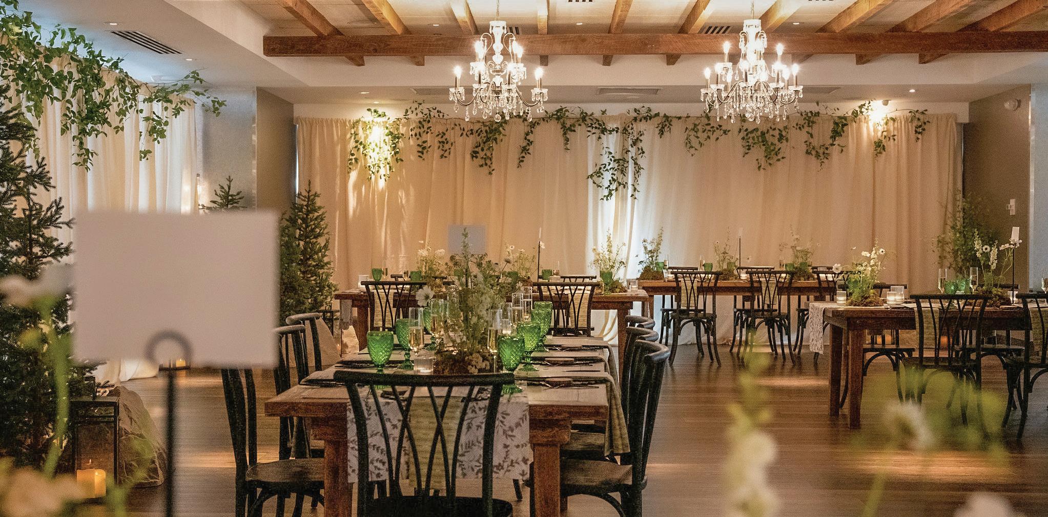 milestone celebrations. Its space blends modern elegance with timeless charm, featuring plush furnishings, statement chandeliers, and warm accents that create a sophisticated yet inviting atmosphere.
