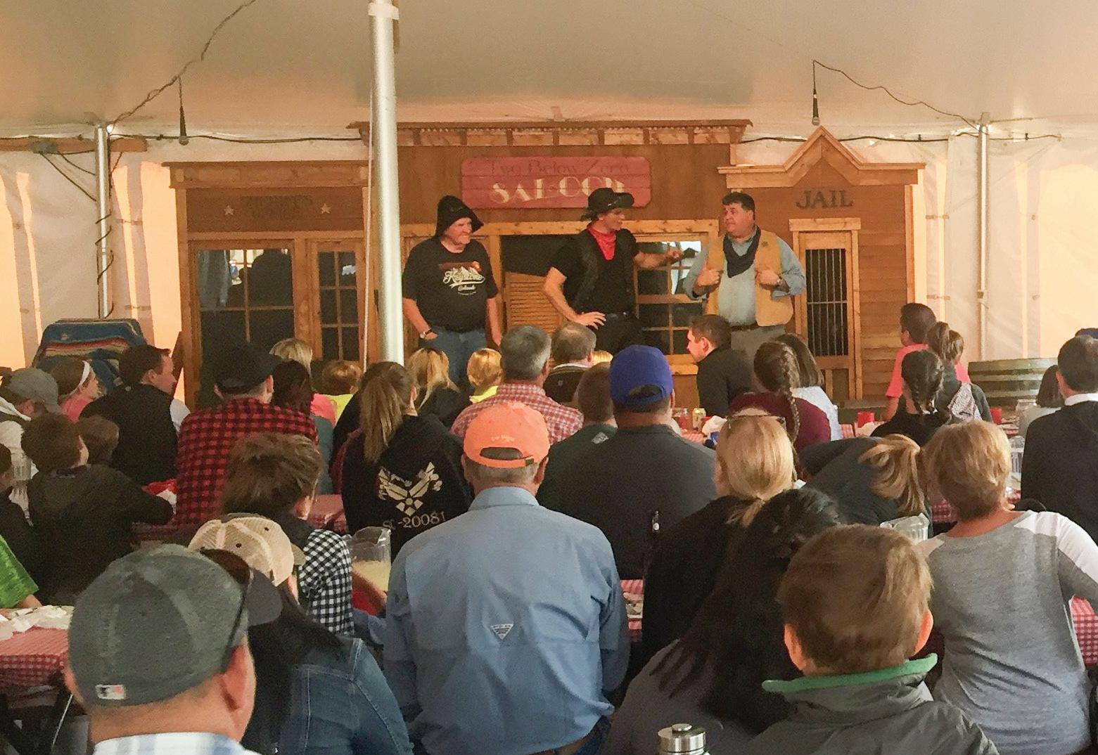 since 1969. From Memorial Day weekend through the last Saturday in September, groups can book a night at Bar D and dig into roast beef, chicken, and all sorts of side dishes, paired with lemonade and cowboy coffee. There also is a train, wagon rides, horseshoes, gold panning, a shooting gallery, blacksmith demonstrations, and shops to enjoy alongside entertainment provided by Bar D Wranglers.
