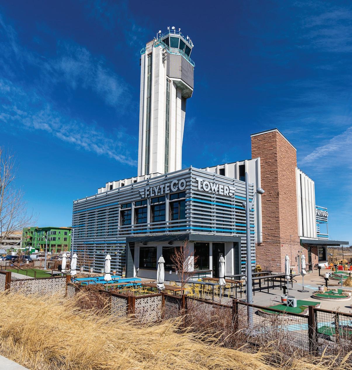 FlyteCo Tower in Denver occupies the air traffic control tower building that was part of the former Stapleton International Airport. Owned by FlyteCo Brewing, the 25,000-square-foot brewery, bar, restaurant, and entertainment venue opened in 2022. It’s a prime playground for groups of up to 600 with bowling, miniature golf, arcade games, Ping-Pong, and a large patio featuring outdoor games. A separate entity, Over Flyte Denver, offers ax throwing, darts, golf and sports simulators, and 5,000 square feet of rentable space in the tower portion of the facility for events.