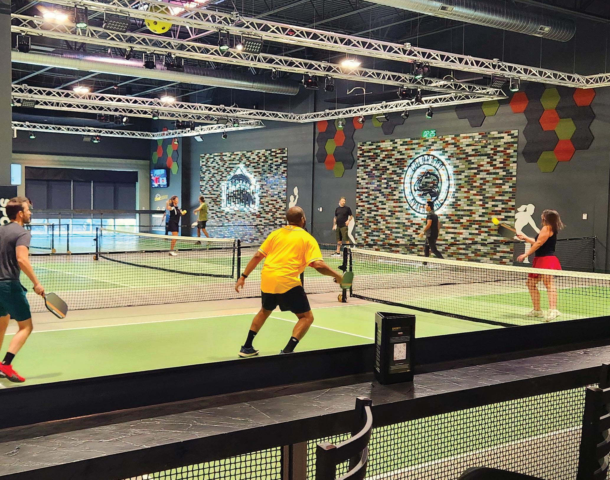 Pickleball is one of the fastest growing sports in the U.S. and perhaps one of the most social, resulting in venues that are far more than just courts to play on. Sporty Pickle Bar & Grill in Englewood is a hub for sports with three indoor pickleball courts, other games like pool, and more than 30 TVs for watching sports teams play. Any skill level can participate or spectate from the PicklePit, and there is private event space including the Banger Lounge that opens onto one of the pickleball courts and has three dart lanes.