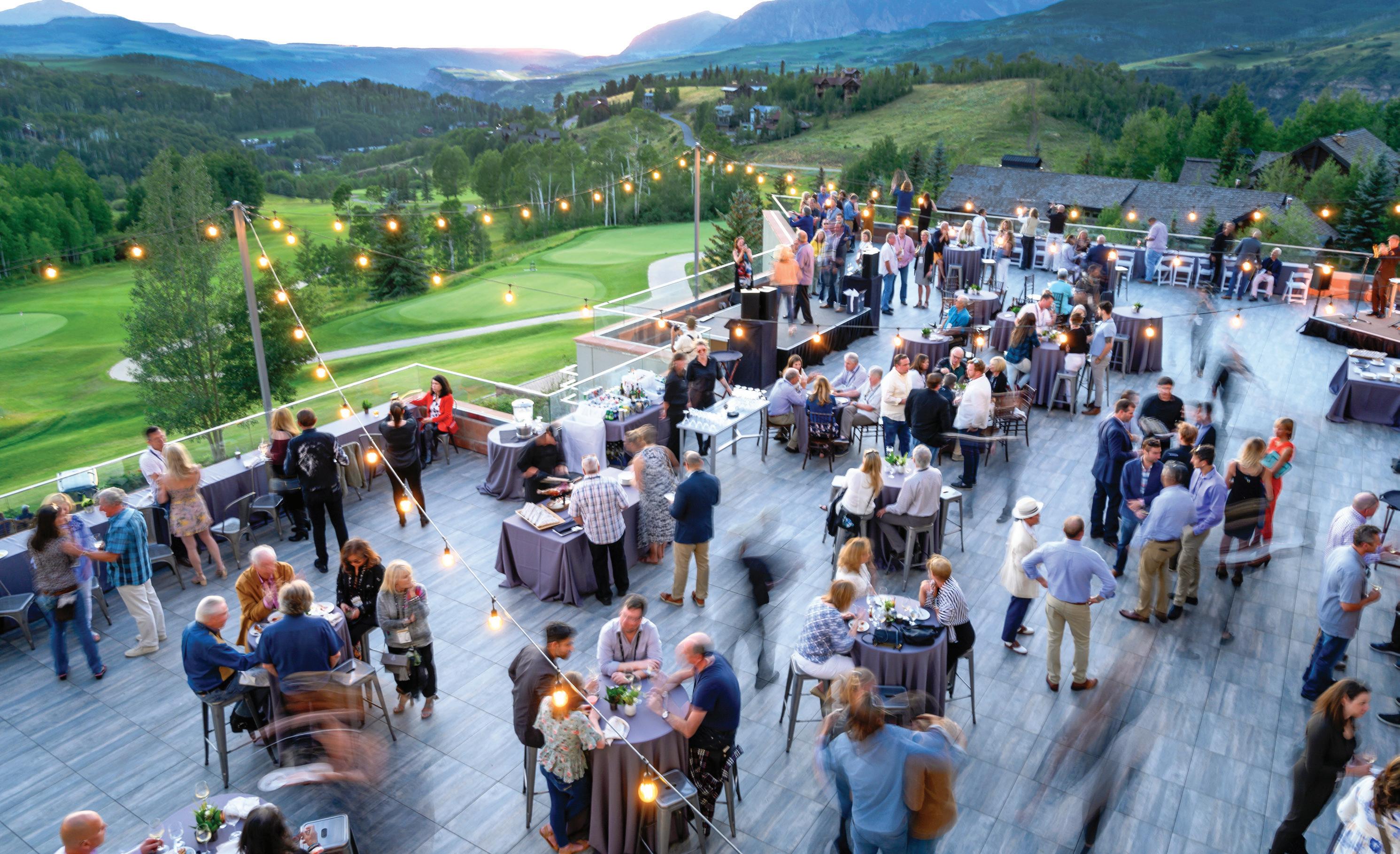 Planners with crews that embrace a wagon, sleigh, or horseback ride in addition to their grub have great options in Frisco and Snowmass. Two Below Zero offers both summer and winter options from Frisco, with barbecue dinner rides featuring a buckboard wagon pulled by mules to a summer campsite for games like cornhole, horseshoes, and roping before dinner and a Wild West show. In winter, a 20-minute sleigh ride delivers participants to a backcountry camp for a threecourse dinner and live music in a heated tent. Apple pie and ice cream and hot cocoa with a shot of peppermint schnapps wrap up the feast. Two Below Zero can accommodate 100 to 120 guests during winter and as many as 160 during summer.