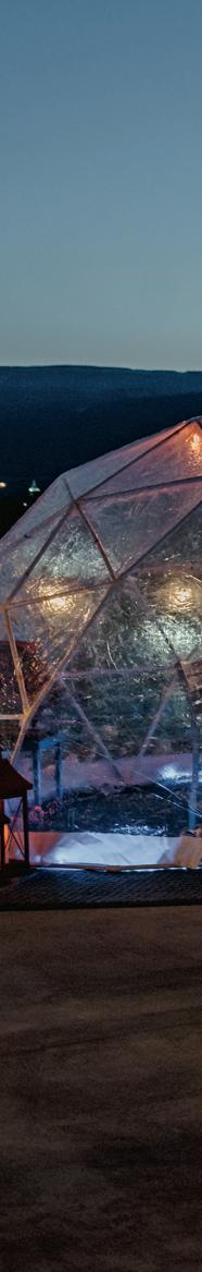 Annette at Stanley Marketplace in Aurora installed miniature greenhouses and a yurt to extend its dining space. Owned and operated by Caroline Glover, a 2022 James Beard Award winner for Best Chef: Mountain, the restaurant has since added a patio that can be enclosed during the colder months. Elsewhere in the Denver metropolitan area, heated winter igloos on the terrace at The Curtis, a DoubleTree by Hilton, double as communal areas for gatherings held in the adjacent Four Square Ballroom.