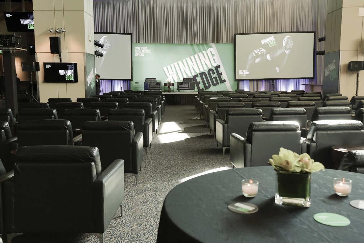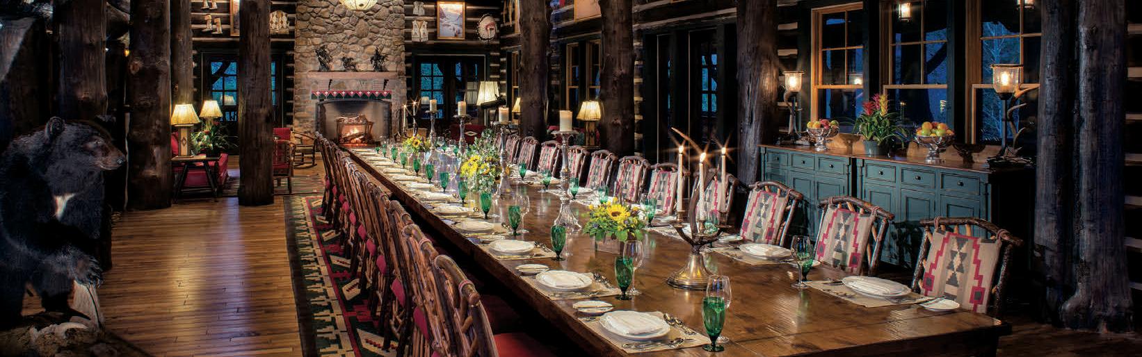 For an executive meeting, re-create the coziness of a rustic slope-side lodge so participants can focus, get to know one another, and experience the luxurious lifestyle of the mountains. Après ski here should take a different tone with a vintage ski entryway, flannel-tufted bar surrounded by textured wood cocktail tables, generously sized leather chairs around faux fireplaces, antleretched glassware, and plenty of ambient lighting.