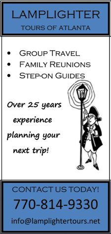 Ph: (770) 814-9330 Fax: (678) 475-0655 www.lamplightertours.net Contact: Lee Klaer info@lamplightertours.net