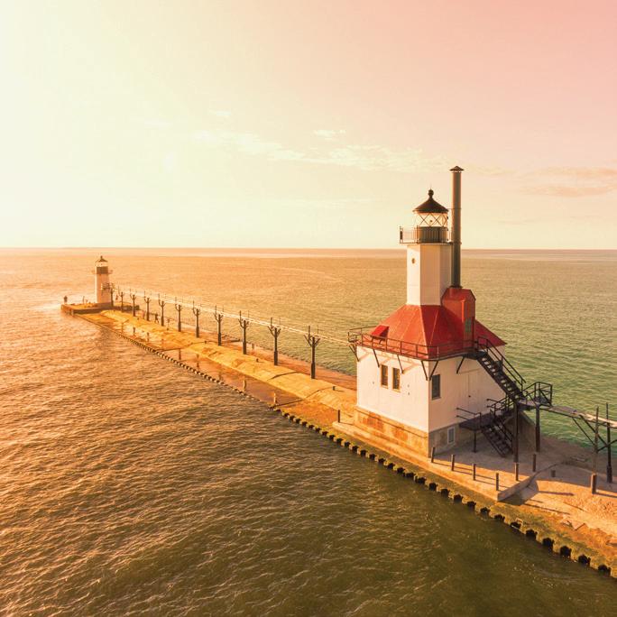 WELCOME TO MICHIGAN —a land of sparkling blue waters, untamed wilderness, and warm hospitality. We invite you to explore our two peninsulas, where pristine nature and majestic land will revive your spirit. Experience unique ports of call as you cruise our surrounding Great Lakes, showcasing thriving cities, grand landscapes, rolling dunes, and miles of white sandy beaches. Discover quaint beach towns that offer tranquil shorelines, as well as spectacular sunsets, cozy restaurants, uncommon shopping opportunities, and a variety of year-round activities that keep travelers coming back again.